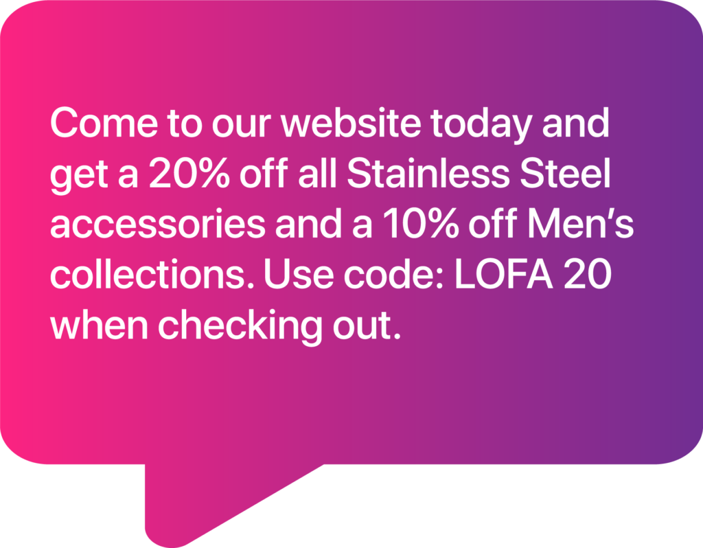 SMS marketing is the most cost-efficient & environmentally friendly channel to put your brand forward to an active audience. Leverage the power of SMS as part of your marketing strategy to boost conversions and spark direct conversations about your brand.